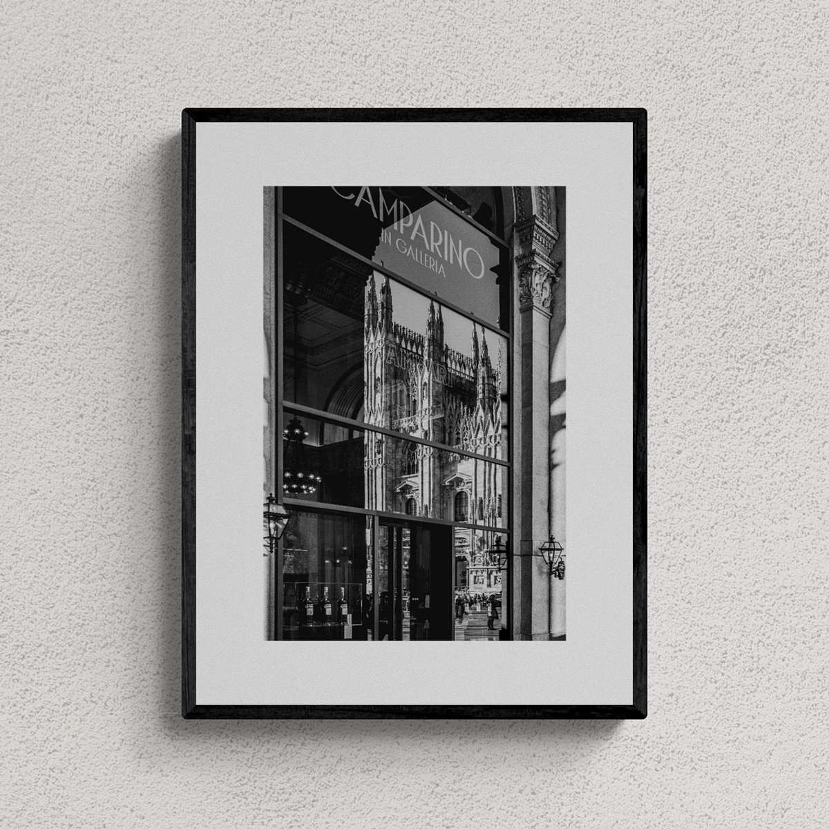 Milan Cathedral reflected in the iconic bar “Camparino in Galleria” in Milan, Italy 2018.